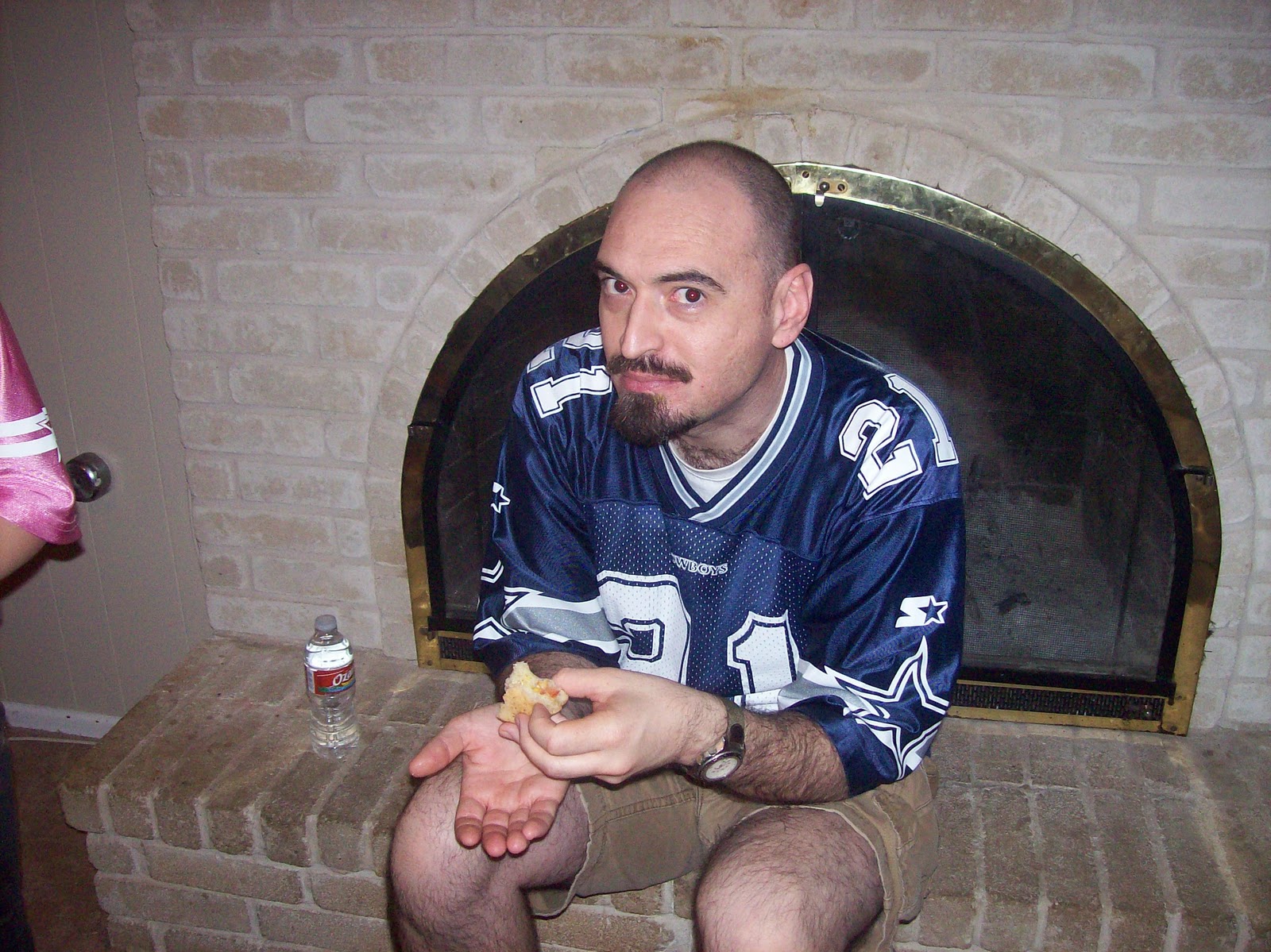 We just snacked for lunch, took a nice pregame walk, the weather was beautiful. 65 and sunny after our ice/snow storm on Friday. I'm sure I burned off at least one Frito on that walk. ;) Now our family are die hard Cowboy fans, so that explains the jerseys. We wear them every Super Bowl, regardless of who is actually playing. I'm the only one without a jersey, so I wore Billy's high school jersey because they had Green Bay colors. :) Ignore Kevin's charming demeanor in the pic, I did on the walk... Eww, and terrible pic of the garage, sorry for the mess.